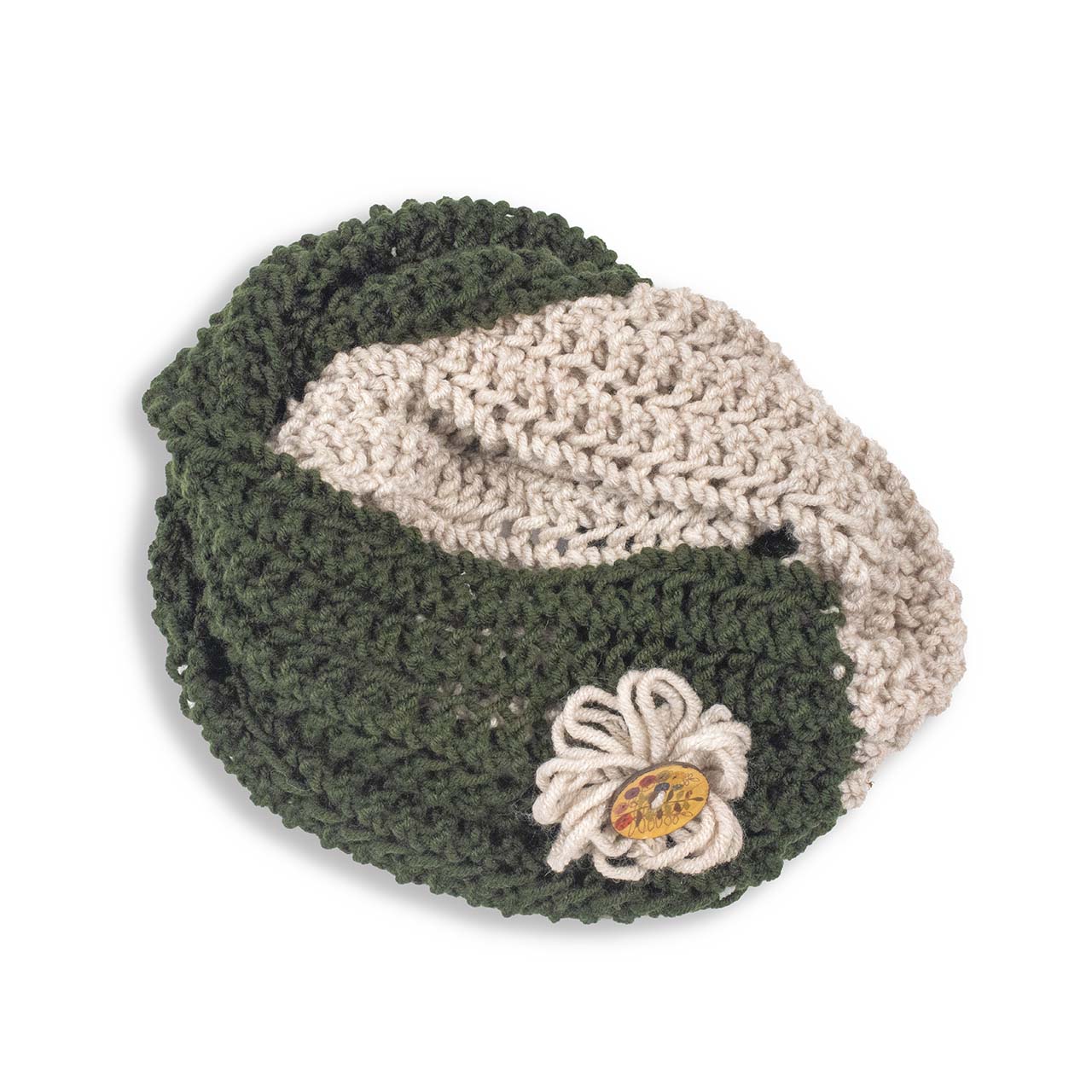 Λαιμός διπλός και δίχρωμος σε κρεμ και λαδί με διακοσμητικό κουμπί.