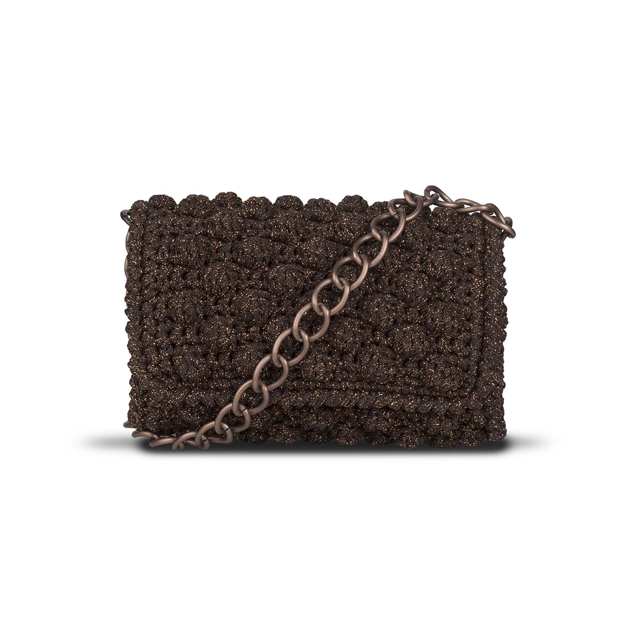 Κλασσικό τσαντάκι bubbles από πολυπροπυλένιο με μεταλλόνημα σε καφέ αποχρώσεις με καφέ αλυσίδα ενός μέτρου.